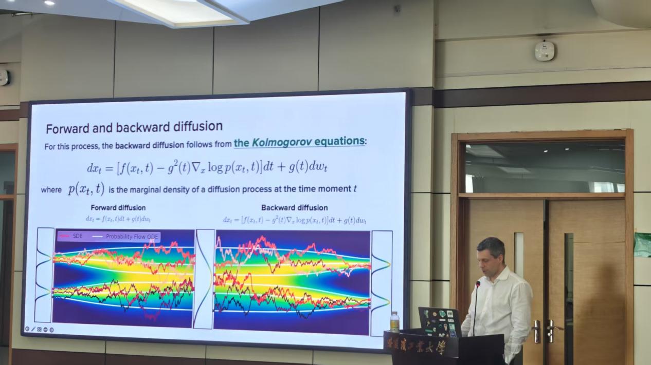 在本次学术讲座中,Burnaev教授详细阐述了20世纪数学家A.N.Kolmogorov在概率论和马尔可夫随机过程领域的学术贡献。报告重点介绍了Kolmogorov理论在当代人工智能领域,特别是生成式建模、信号处理和图像生成等应用中的现实意义。Burnaev教授系统梳理了基于扩散过程的生成建模方法,并深入探讨了蒙日-康托罗维奇问题的数学原理。通过解析熵正则化问题与特定极值扩散过程构建间的内在联系,他展示了这些理论在图像处理、图像超分辨率、文本到语音合成和基于文本描述的图像生成等实际应用中的潜在价值,为人工智能前沿研究提供了深入的数学视角。